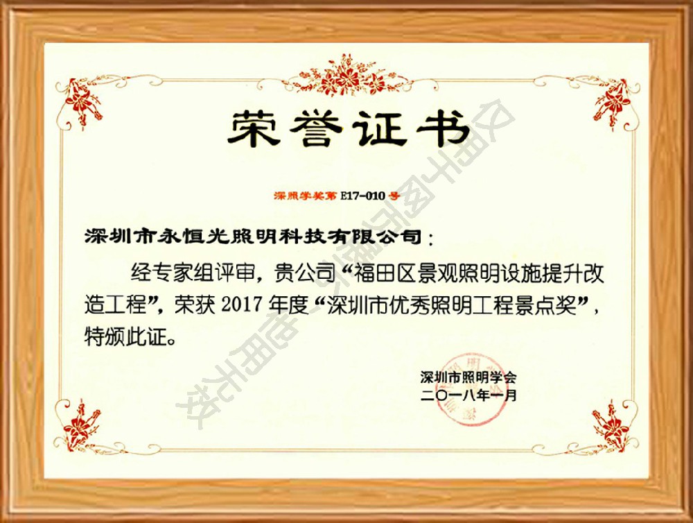 永恒光智慧科技集團(tuán)致力于打造卓越城市光環(huán)境服務(wù)平臺(tái),是一家國(guó)內(nèi)優(yōu)秀的光環(huán)境科技服務(wù)商,國(guó)家高新技術(shù)企業(yè),玉禾田環(huán)境集團(tuán)【股票代碼:300815】成員企業(yè)。擁有城市及道路照明工程專業(yè)承包一級(jí)、照明工程專項(xiàng)設(shè)計(jì)甲級(jí)等多項(xiàng)企業(yè)資質(zhì)。自公司成立以來,秉承“與客戶共成長(zhǎng),服務(wù)創(chuàng)造價(jià)值”的經(jīng)營(yíng)理念,為全國(guó)共二十余座城市提供城市光環(huán)境綜合服務(wù),共管理城市路燈超50萬盞,城市亮化建筑超2000棟。現(xiàn)已成為業(yè)界內(nèi)口碑好、綜合實(shí)力強(qiáng)、客戶信賴、具有全國(guó)競(jìng)爭(zhēng)力的光環(huán)境服務(wù)綜合平臺(tái)。 永恒光智慧科技集團(tuán)聚焦發(fā)展智慧照明設(shè)計(jì)與施工、城市照明設(shè)施運(yùn)營(yíng)與維護(hù)、城市節(jié)日氛圍營(yíng)造、城市照明節(jié)能服務(wù)等業(yè)務(wù)板塊,業(yè)務(wù)立足深圳,輻射粵港澳大灣區(qū),遍及全國(guó)各地。先后承接包括國(guó)家及省、市重點(diǎn)工程在內(nèi)的大小項(xiàng)目上千余項(xiàng),并多次榮獲設(shè)計(jì)獎(jiǎng)、工程獎(jiǎng)、運(yùn)維獎(jiǎng)、十大地標(biāo)項(xiàng)目等獎(jiǎng)項(xiàng)榮譽(yù)。公司核心技術(shù)團(tuán)隊(duì)主持并參與編制《城市道路照明設(shè)施運(yùn)行維護(hù)技術(shù)標(biāo)準(zhǔn)》、《夜景照明LED點(diǎn)光源及系統(tǒng)技術(shù)規(guī)范》等多項(xiàng)技術(shù)標(biāo)準(zhǔn)。