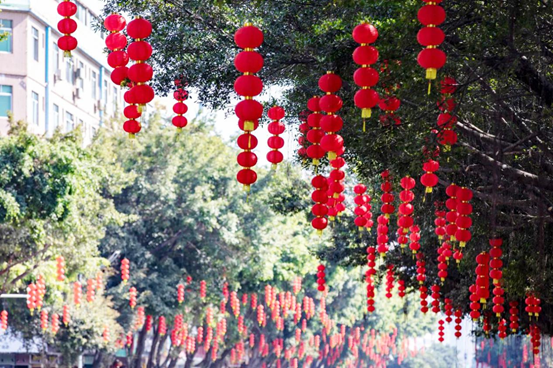 神州逢春暖,江山映日紅。為迎接2021年春節,我司在全市各區多條城市道路的路燈燈桿和人行天橋上懸掛大型燈籠,懸掛紅旗,在城市道路重要節點,公共廣場周邊行道樹上懸掛小燈籠。目之所及,一片喜氣洋洋,隨處可見的中國紅展示著祖國的繁榮,富強!紅之喜慶,紅之吉祥,一抹溫暖著各地游子心底的回家紅,向市民游客傳遞出濃濃的年味。