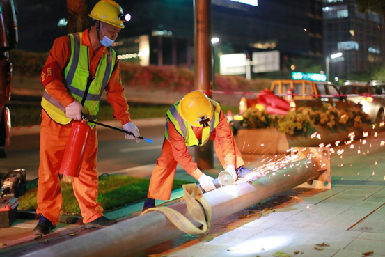 演練中,各應急小組人員各司其職,相互協作。經過一個半小時的緊急作業,該路段路燈照明恢復亮燈。隨后電工對該道路恢復照明后對線路做絕緣檢測,確保無漏電情況,徹底消除安全隱患。最后逐步拆除現場圍設清點人數,應急演練結束,各演練參與人員與應急處理車輛有序離開現場,整個過程有條不紊。
