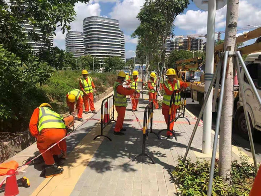 對涉水燈桿周圍進行圍擋