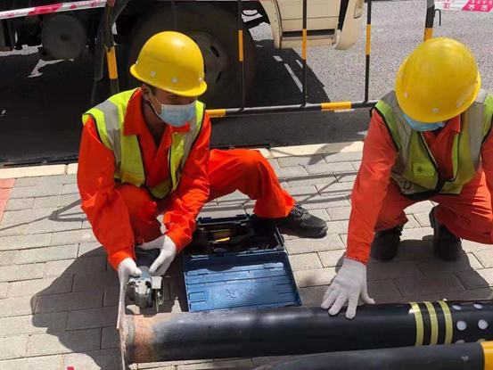 各演練參與人員與應急車輛抵達事故現場,各應急小組分工明確,應急排危井然有序。由交通疏導小組負責擺放警示牌和疏導交通,對涉水燈桿周圍進行安全圍擋,設置交通安全防護設施;電工對現場設施進行斷電處理;后勤人員對現場積水進行緊急抽排;焊工對倒伏燈桿進行切割,電工的裸露的線頭進行絕緣處置;后勤人員負責現場的應急電源照明;安全員監督現場作業,疏導行人。